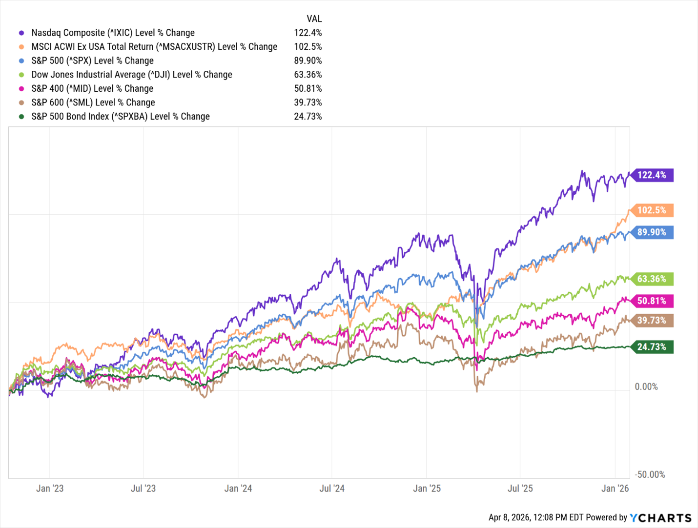 Below is an outline of the returns of these indices from October 13, 2022, to January 29, 2026